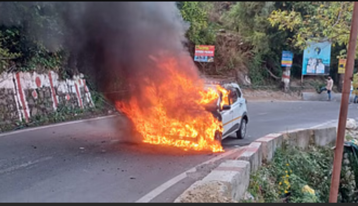 जीरो प्वाइंट के पास कैंपटी घूमकर लौट रहे पर्यटकों की कार में लगी आग, छह लोग थे सवार