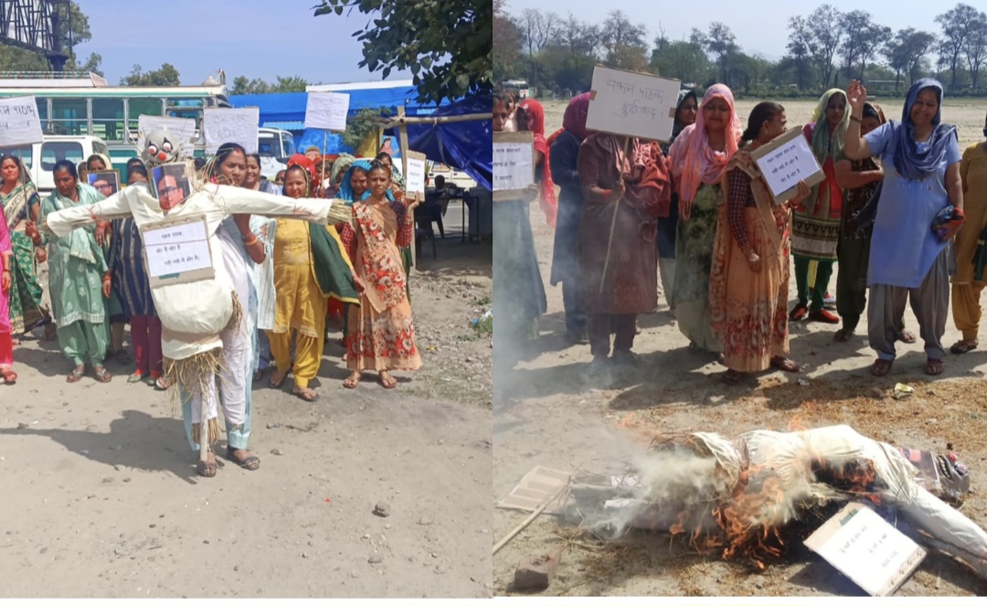 फिर विवादों मे विवादों का सरगना सहायक अभियंता पंकज पाठक आक्रोषित महिलाओं ने फूंका पुतला